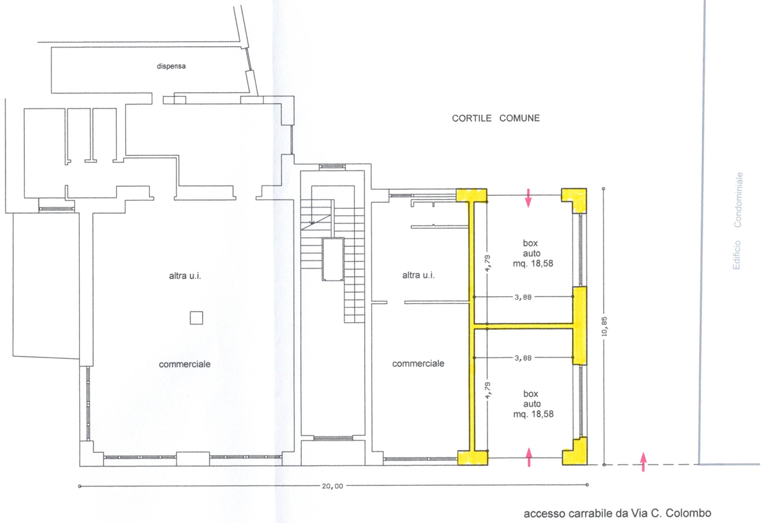 In posizione centrale e comoda a tutti i servizi proponiamo in vendita due box auto di 20 mq ciascuno, di nuova costruzione, con accesso facilitato grazie all’ampio ingresso di 295 cm e altezza interna di 385 cm.
